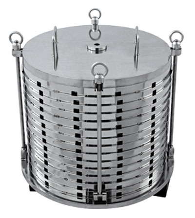 未經過濾的液體在正(zhèng)壓力(lì)下進入過濾器,液體(tǐ)沿向下方(fāng)向移(yí)動,並通過過濾(lǜ)板側麵的(de)開口。隨著液體壓力的增加,過濾介質截留外來顆粒,隻允許清澈的濾液穿過由互鎖壓力杯形成的中央通道到(dào)出口。繼續過濾直至達到單元(yuán)的濾餅容量或由(yóu)於濾餅阻力導致濾液速率變得太慢。