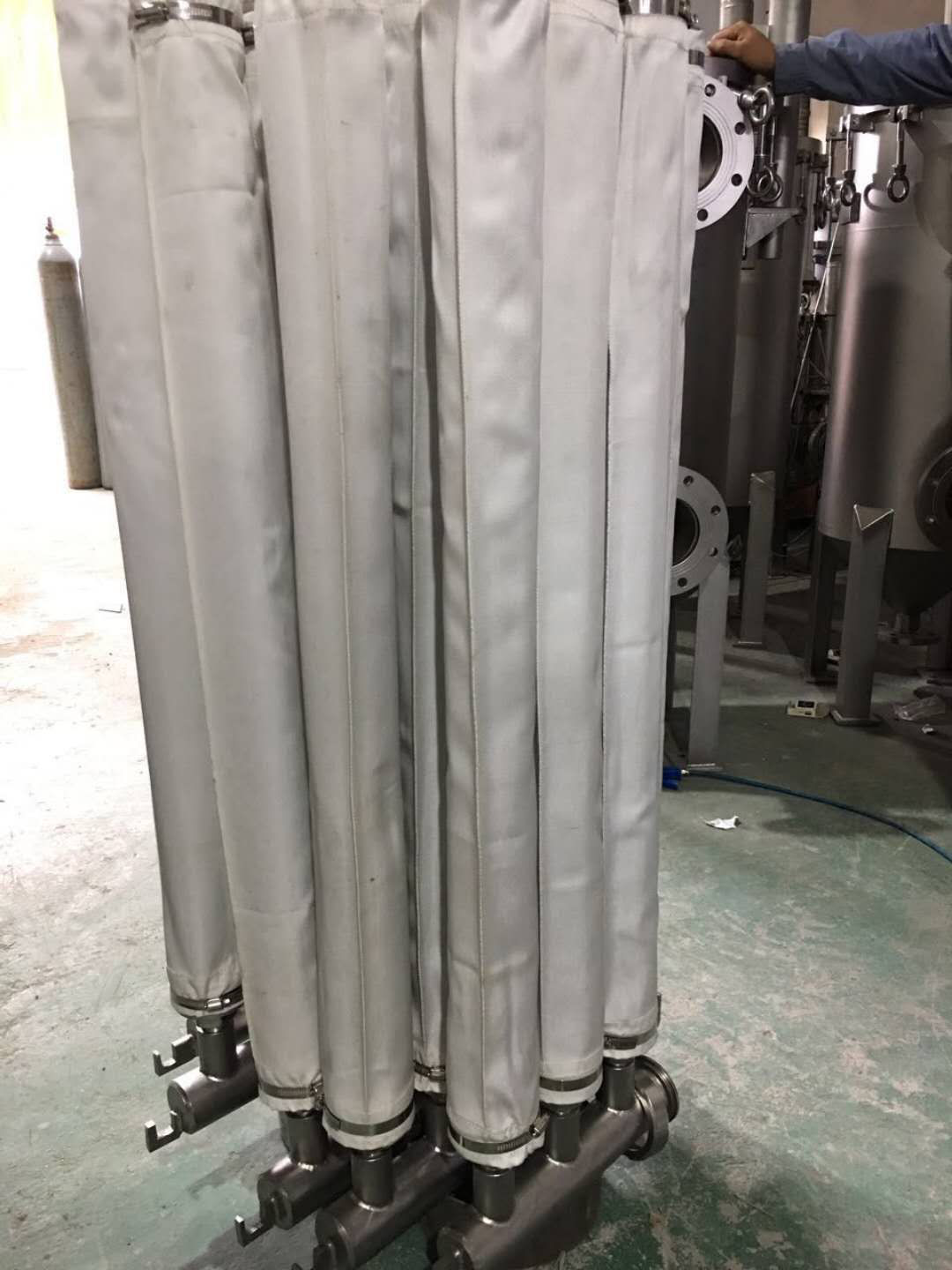 由於其簡單性,這些燭式拋(pāo)光過濾器可用於多種應(yīng)用。 根(gēn)據特定需要,這些元件可以是多孔的燒結金屬結構,多(duō)層(céng)介質或裝有織物濾布的(de)蠟燭(zhú)。 通過傳統的從外到(dào)內過濾將固體從漿液中除去。 濾餅的排出是(shì)利用氣體或合適的液體通過反脈衝法進行的。